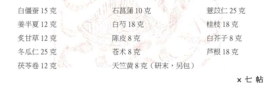 问其病:喉咙不适,连续咳嗽两个月,其间使用西医点滴治疗,虽暂时有效,但反弹极快。近期肺中浓痰骤然增多,吐出呈泡沫状,色褐黄,口气重。肺中气短,憋闷难耐。平日几无汗,但晨起微有细汗。不畏冷,不骨节疼痛,却周身无力。二便频率正常,大便偏干,小便偏黄。溯其源:此近似仲景所论坏病也,当知犯何逆,随证治之。该患者本就有肺部不规则结节的问题,人体内一切非必要的有形物质的增生,起初都是寒症,而寒气在肺内的长久堆积,必然导致糟粕无法正常排出人体,久而久之,就有了热症,患者晨起出汗,面色焦黄,痰褐黄等症状,皆入此类。此时若用寒凉中药医治,本就不对,若再用西医消炎抗生素之流入肺,就会导致寒气和糟粕在肺部的更顽固堆积。寒气,会让结节更难消散,糟粕,则会成为供应结节进一步生长的营养物质。诚实而论,即使在西医的显微镜下暂无法得出癌症确诊的结论,不过,我们知道血气运行喜温和,寒性收引,会阻碍血气运行。如若该患者无法有效驱逐寒邪剥离糟粕,且继续使用西药治疗,那么,就可能演化成癌症就是一线之间。基于上述判断,乃予下方三帖:三帖服毕,面色转为淡黄,浓痰大大减少,口渴口干症状尚在,肺部明显清爽,晨起出汗小时,但仍有咳嗽,肺部仍有异物感。乃再予下方合计十四帖:服毕再诊,体力逐渐恢复,口干口渴程度减半,白日几无咳嗽,但夜间依然咳嗽。痰不再浓稠,泡沫明显变少,肺部异物感消失,不气短,人轻松,随着肺部的缓解,口气也随之消失。面色黄暂未改善。乃再予下方五帖:五帖毕,在巩固此前疗效的基础上,夜咳消失,脸色好转,口干口渴已很轻微,体力基本回复如常。这里要注意的是,寒气长久内陷所导致的口干口渴,在治疗伊始断不能以滋阴生津作为治疗重心,而是应当用较低比例的麻黄桂枝来引导寒气和糟粕的排出人体,具体详见前三帖药方的使用。在确认寒气和糟粕大减的情况下,再用玉竹栝楼之类缓缓滋阴生津,才能达到解渴却不新滋生糟粕的效果。治疗至此,可以基本判定患者症状已趋稳定,肺部结节和甲状腺肿大短期内已无进一步发展的基础。未来治疗,或可在春夏二季适当增大桂枝的使用比例,借助春夏阳气的升发之力,进一步强化白僵蚕、川芎、姜半夏、栝楼根等药物的散结之效,以期解决甲状腺肿大和肺部不规则结节的隐患。———— THE END ————